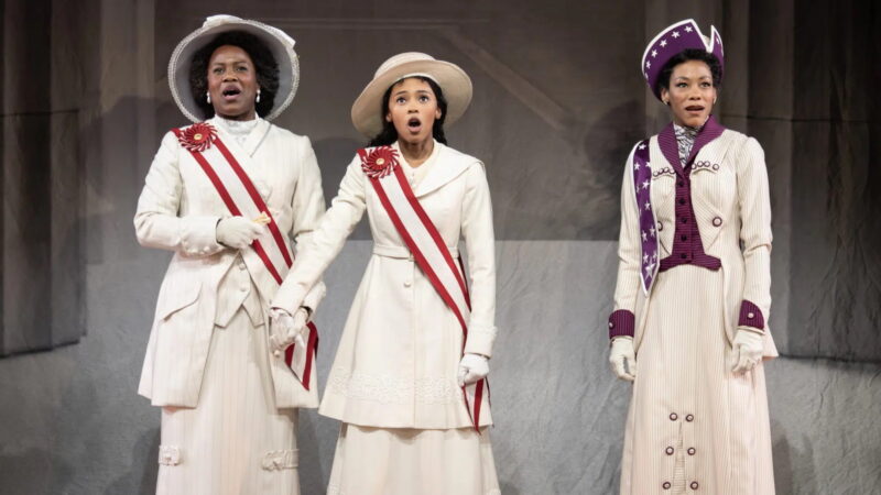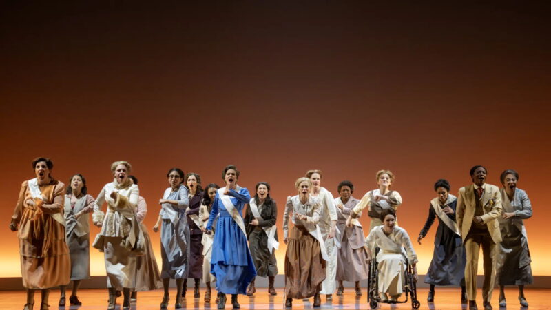 The North American tour of Suffs lands in Hollywood on the heels of the Tony Awards for Best Book and Best Score (both Shaina Taub’s). Will it stand the test of time? For sure, the story it tells –the American women’s suffrage movement from 1913 to the ratification of the Nineteenth Amendment in 1920– is a story that needs be told. All the more today, when rights we took for granted are under attack. Our great-grandmothers didn’t get to vote (“Let Mother Vote”); our grandmothers had no bank accounts till 1974; women are still underrepresented in government and leadership roles, and Alice Paul’s fight for equality is far from over. In fact, it has just begun, as “Keep Marching,” Suffs’ rousing finale, warns us.