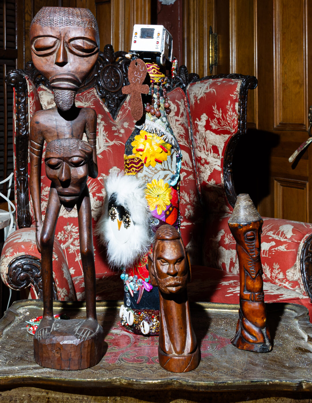 Select African phallic statues flank a special multi-media phallic work by Ramani Edmondson.