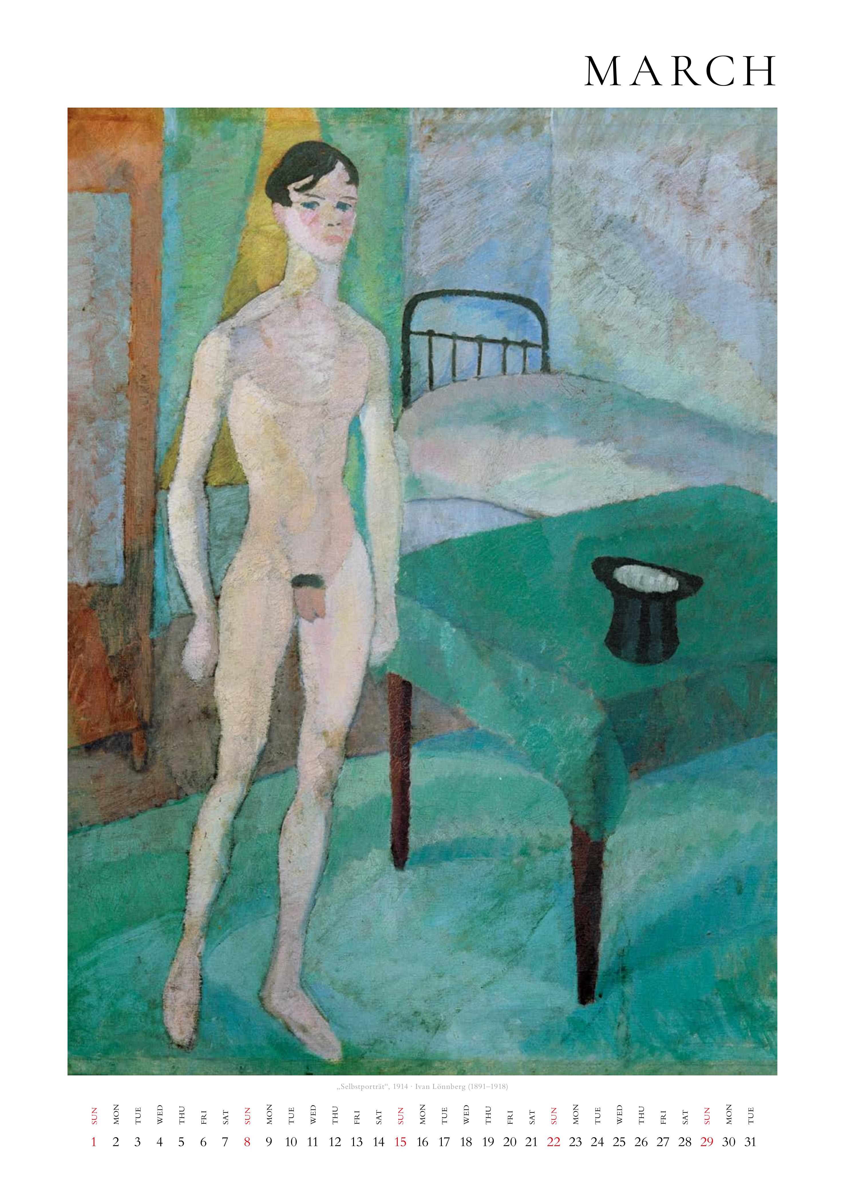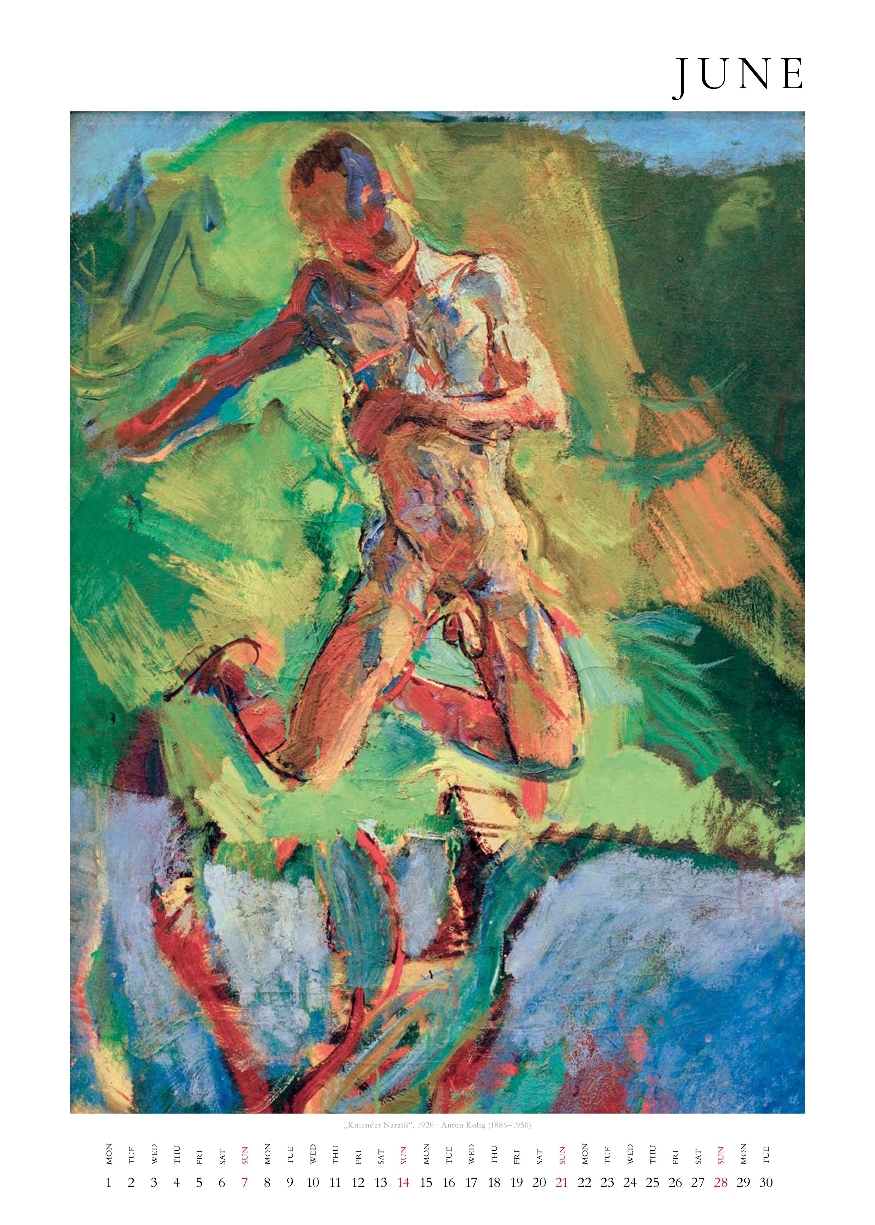 “The male nude has always exerted a great attraction on artists and viewers alike,” writes editor Bjorn Köll. “The 13 works of art presented in this calendar reflect the fascinating diversity in the depiction of the unclothed body.”